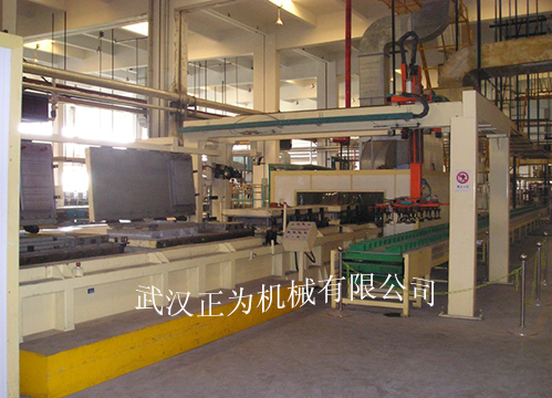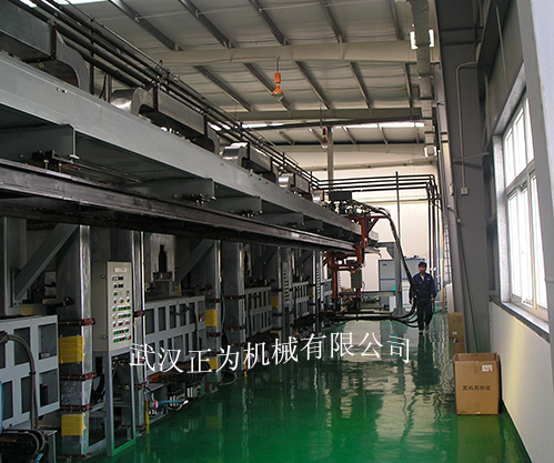 冰箱箱門發(fā)泡生產(chǎn)線采用雙鏈輪平移升降式傳動(dòng)結(jié)構(gòu)形式。由機(jī)架、傳動(dòng)裝置、模架、烘箱、開合模機(jī)械手、取件吸盤小車及電控系統(tǒng)組成。生產(chǎn)線的工位數(shù)可根據(jù)客戶要求進(jìn)行設(shè)計(jì)。